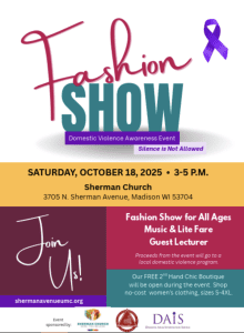 Join Sherman Church on October 18, 3-5pm for “Hope & Healing” Domestic Violence Awareness Fashion Show.